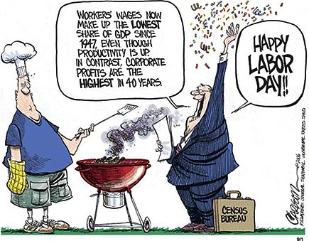 Enjoy Labor Day today and even if you are not a member of a Union, be thankful to them for doing the hard work, even getting beaten up and killed for many of the rights you enjoy today as a worker. Support them because in doing so, you support yourself and the economic well-being of the nation as a whole, including the 1%. They’re just too greedy and pound foolish to recognize it.